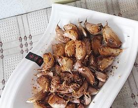 带皮蒜瓣,孜然、辣椒粉、五香粉、芝麻、盐、味精。