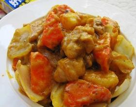 超级好吃的奶香咖喱鸡,原先我做咖喱的菜,最后的成品总是会差那么一点儿味,咖喱的酸涩味会有点儿重,偶然得知了这个窍门,那就是在咖喱酱里再加上一些淡奶,会让咖喱瞬间变的柔滑,丰厚,浓香无比,这盘咖喱鸡,可真是让我小小的陶醉,因为一点儿不比饭店里的差呢~