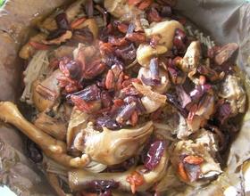 最后,撒上红枣和枸杞,放入电锅蒸40分钟即可