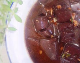 - 4. 加一碗水,大火煮开,转小火煮1分钟。放入事先切好的血块,水刚刚没过鸭血为宜。