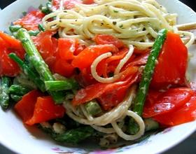 煮意面的时候一定要在水里加盐.切记.这样煮出的意面才好吃. - 2. 煮意面剩下的水用来焯下芦笋.蒜蓉适量.