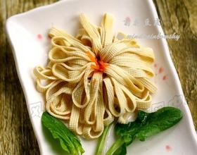 把豆皮卷放到盘子中,再将豆皮散开,就成菊花形了