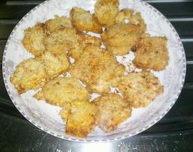 - 2. 然后把淀粉调好,淀粉中也要加一点腌料,把薄片放进湿淀粉中然后放进装满面包糠的盘子里将两面沾满后备用,现将空气煎炸锅170-180度预热5分钟,然后将处理好的芋头片放进锅内铺好,只能铺一层,上面油刷刷一层薄油,然后煎炸锅继续加热5分钟
