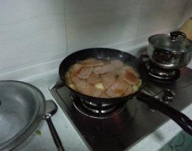 锅热入油加入葱蒜。扁炒出香味。加入白菜大火翻炒。加入水。锅开时把切好片的午餐肉加入锅中。盖上锅盖闷五分钟即可出锅。。