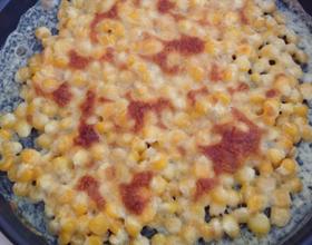 把刨好丝的马苏里拉均匀洒在拌好的玉米上