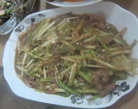 先放入大蒜爆一下,然後放入黑胡椒牛肉爆炒.最後放入韭黄.翻炒几下.