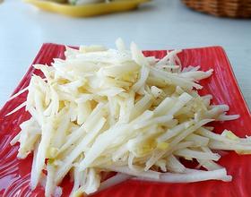 锅内放花生油,烧热,放姜末煸炒一下。再盐和白糖。