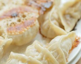 - 6. 出锅时,将盘子盖在饺子上,用手撑住盘子,再将煎锅倒扣过来,完美的冰花煎饺就大告成功啦!