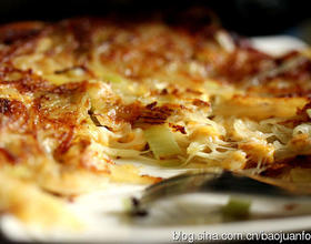 再盖一层土豆丝,翻面煎至双面金黄即可。