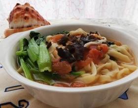 - 9. 放入擀好的手擀面煮至面条熟,加入油菜,略煮即可关火。
