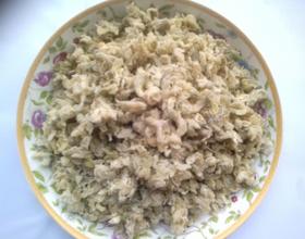 将槐花洗净,沥去多余的水分,将面粉撒在上面翻搅,让槐花都均匀裹上一层薄薄的面粉,再将少量玉米面撒在上面搅匀。
