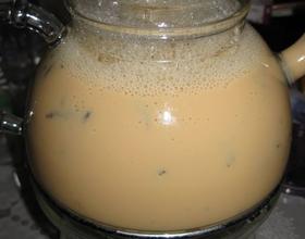 继续煮开,煮到整壶茶和奶都融合的很好,美美的淡咖色出来之后,这壶茶就可以享用了!