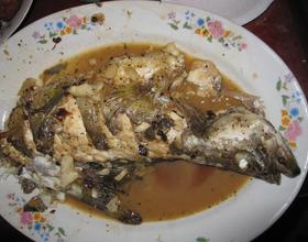 锅内放入油烧热,放入鲈鱼,两面都煎上油,然后放入高汤或者清水。