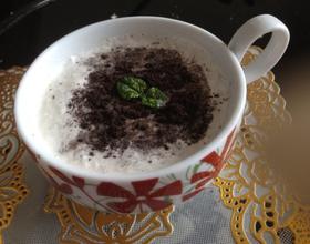 倒入杯里放打发奶油后加入奥利奥碎墨