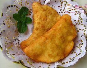 5. 饺子下锅后,用筷子按压一下表面,这样饺子涨大鼓起、吃起来口感够松软;炸好一面后再炸另一面;