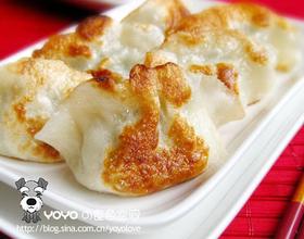 热锅温油,把饺子煎到三面金黄;倒入小半杯水,盖盖儿,焖到水干了,就可以出锅了。