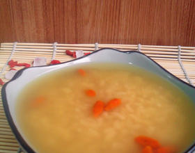 在江米煮的差不多的时候倒入枸杞。