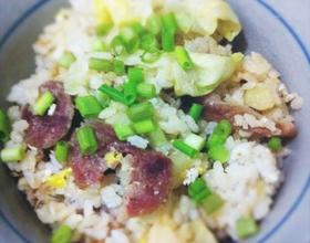腊肠和腊鸡腿一类,除了超市买那种广式腊肠,自己做的腊肠都是有点咸味的,没有广式的些许甜。所以最后加生抽和盐时不要加太多。一点一点来。土豆丁为什么要炒一下,就怕丁切大的时候蒸不熟。嘿嘿
