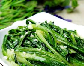 炒到油麦菜碧绿将剩余的蒜蓉全部加入,调入盐和味精即可。
