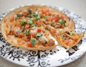 匹萨胚上抹上味好美番茄沙司,撒上芝士碎,再放上炒好的海鲜,用200度的温度烘烤10分钟至芝士彻底融化。
