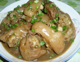- 1. 新鲜猪蹄半只洗净,特别要洗净猪皮及上面的毛。