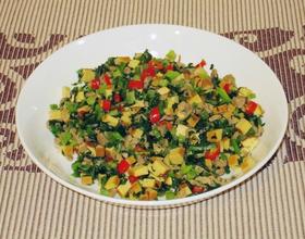 放入雪里蕻和豆腐干丁翻炒。