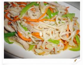 猪肉切成细丝放入碗中