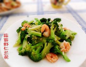 材料有西兰花、虾仁、大蒜;