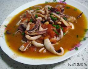 把小鱿鱼杀洗干净,头部整理出来,身体切条状。