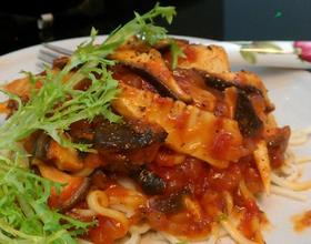 - 9. 面和酱都大功告成,盛盘,上面磨了点黑糊椒即可