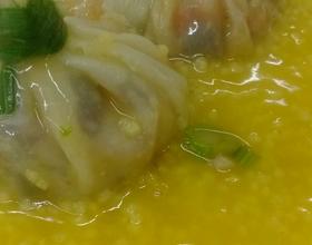用韭菜叶把口封死放盘子里淋小米粥即可