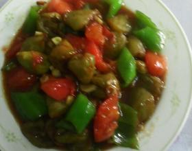 把尖椒放入炒到少微变软,放西红柿翻炒放酱油少量水,盐,糖记的多翻
