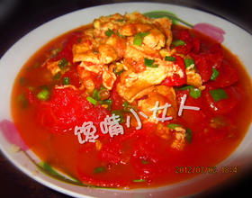 把西红柿切块,细心的煮厨们可以把西红柿地“外衣”给脱掉哦!