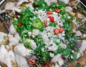 - 12. 鱼片面上加葱花香菜,蒜蓉,