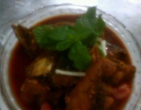 把炸好得鱼倒下去。加入料酒,生抽,老抽,味精,鸡精,胡椒,