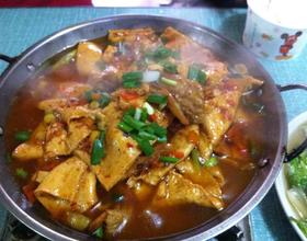 最后加入开水煮开,倒入炸好的豆腐,煮五分钟入味用生粉勾芡起锅