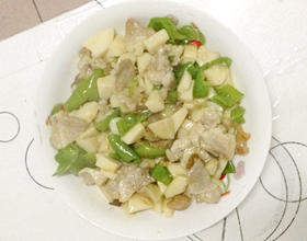 青椒切片、五花肉切片、生姜切片、蒜剁沫备用