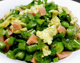 倒油七成热倒入除鸡蛋外的所有食材,加入盐、五香粉、少许醋翻炒熟