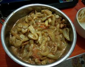 将腌制好的肉放入油锅中煸炒,放入葱姜蒜