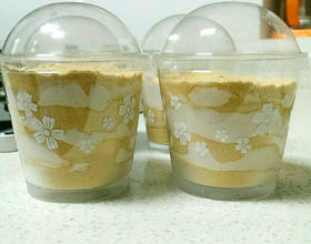 - 3. 木糠杯中铺一层饼干屑,再用裱花袋挤上一层奶油,第三层继续铺饼干屑,再铺一层奶油,再第五层饼干屑,ok,大功告成!