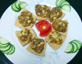将做好的秘制酱料淋在豆腐块上,大功告成。
