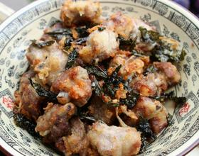 - 3. 锅入油排骨想一次就出锅的话油得漫过排骨,一个排入油锅,茶叶捞出同时放进去,全程中大火。火控制不好的就改中火