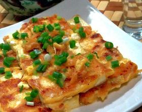 此菜特点;颜色美观、香气扑鼻、鲜味浓郁、豆腐嫩滑。温馨提示;1、豆腐切的大小尽量要均匀。2、此菜可以一锅出,也可以先煎豆腐,然后回锅再烧制;3、如大翻勺有困难,就用锅铲来翻动。4、芡汁要适量,可以完全吸附在包裹豆腐的蛋皮上就可以。大炒勺的这款鲁菜美食“干贝锅塌豆腐”就做好了。吃起来非常鲜美,完全吃不出原有豆腐的味道,此种做法供朋友们参考!