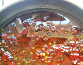蒸好了,炒锅里面倒油。烧热,泼到蒸好的辣椒酱里面。