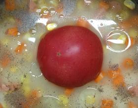 按照正常煮饭的水稍微减少一半点(西红柿会有卤汁)