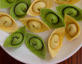 - 9. 绿色(菠菜汁和面的)馄饨就包好了