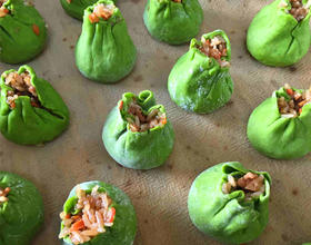 菠菜汁加入面粉后,缺少韧性,馅儿不要包的太满,否则皮容易挤破影响美感哈