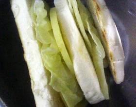 - 11. 烤馍里面夹入土豆片和椰菜。