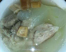 准备材料,冬瓜去皮洗净切块,骨头洗净,干贝洗净