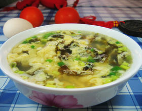 Ps:1、蛋液中加入水或者醋能让蛋鲜嫩,加入料酒可以去腥。2、让蛋液呈现蛋花的要点在于:蛋液倒入锅中时 一定要是涓涓细流状,并且尽量分散在锅中;如果一下倒进很多,那就成了“蛋疙瘩”了。3、倒入蛋液后千万别用筷子或锅铲去搅,否则蛋花的形状都没了。调入最后的调料之后就直接起锅。好了,一道非常简单却又有一定技巧的夏日清爽汤:紫菜蛋花汤。^_^